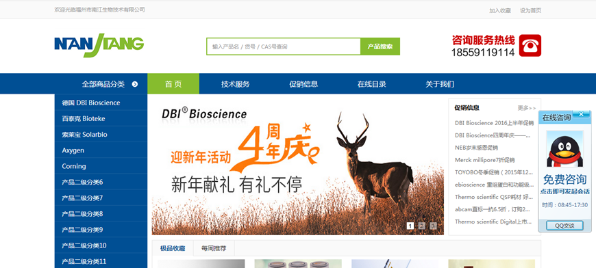 為適應(yīng)市場(chǎng)發(fā)展需要和樹立公司新形象,福州市南江生物技術(shù)有限公司官網(wǎng)5win5.cn于2016年2月25日全新改版正式上線。